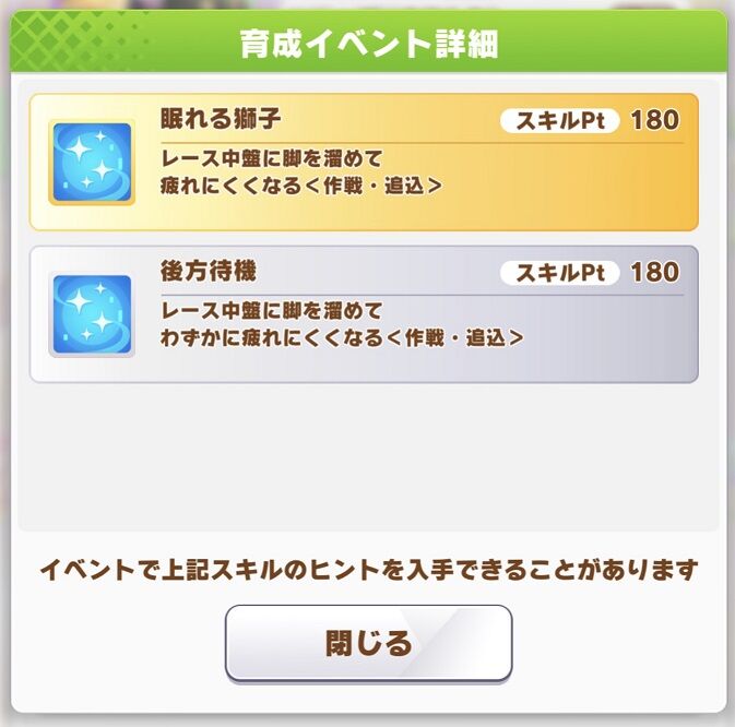 追込みのコツ貰えるの嬉しい!コツ系スキルは視野の確保と賢さが上がるのでこれは良いですね!