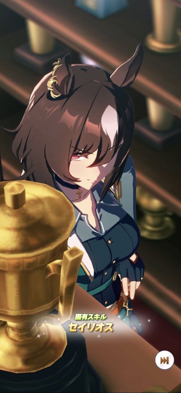2400m戦の中距離に特化した性能のキャラですね!構成モチーフは史実で勝利している日本ダービーと思われますが、2年ほど海外レースで走ったことや凱旋門賞なども含まれていると思われます!中距離でも中団発動のスキルを所持スキルに持ち、固有スキルも中団発動であることから先行差しで運用するのが良いです!固有スキルは2400m戦に特化しており日本ダービーや新育成シナリオの舞台として発表された海外レースの凱旋門賞にドンピシャのタイミングで発動する加速スキルで2400m戦では今後かなり強力なキャラとして活躍してくれます!