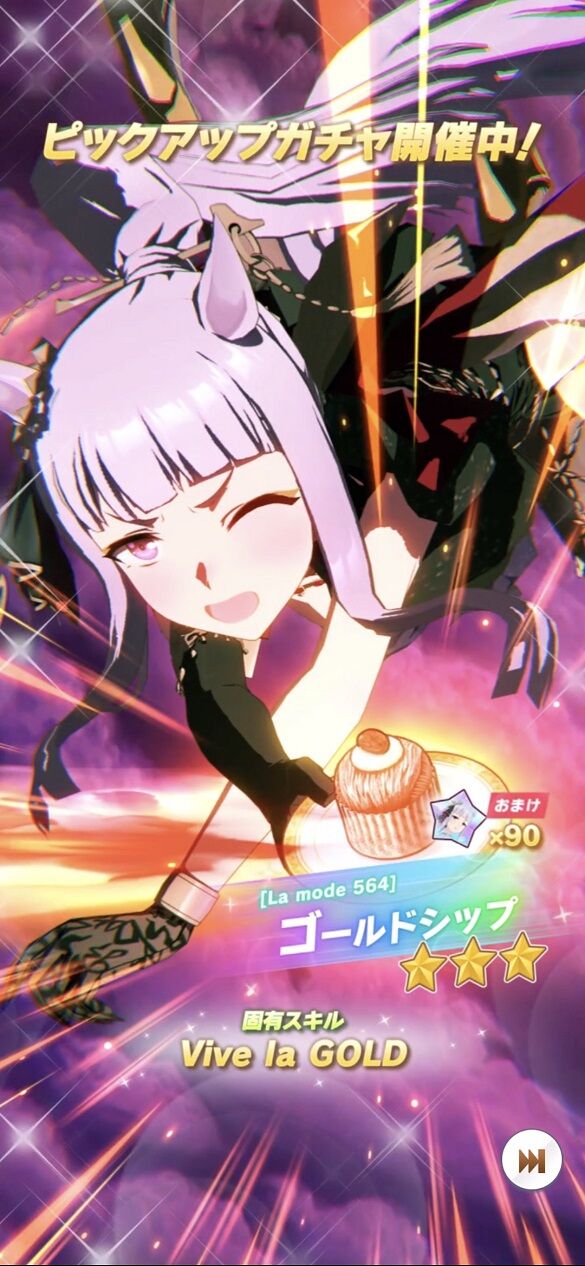 ゴルシがなんかデカいゴルシを召喚したと思ったら分身してケーキ持って飛び上がってって短い固有演出の時間に情報量が多すぎる!!!さすがのゴルシちゃんクオリティ!!!