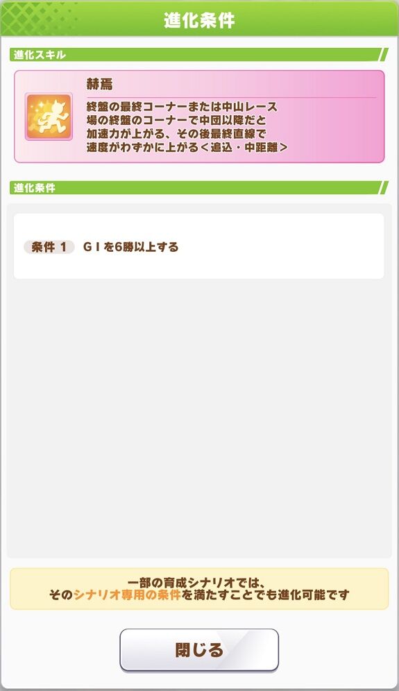 進化条件:条件1<GⅠを6勝以上する>